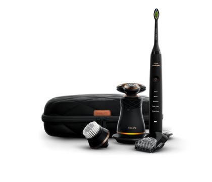 A refined way to start the day for a man with style. Philips pairs a sleek DiamondClean toothbrush with a unique retro-inspired electric shaver. Look and feel your best with a premium shave and outstanding tooth whitening performance. See all benefits