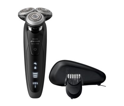 The Shaver 9000 is our most advanced shaver yet. The unique contour detect technology offers exceptional coverage over every contour of your face, and the V-Track system guides hairs into the best cutting position for the closest results.