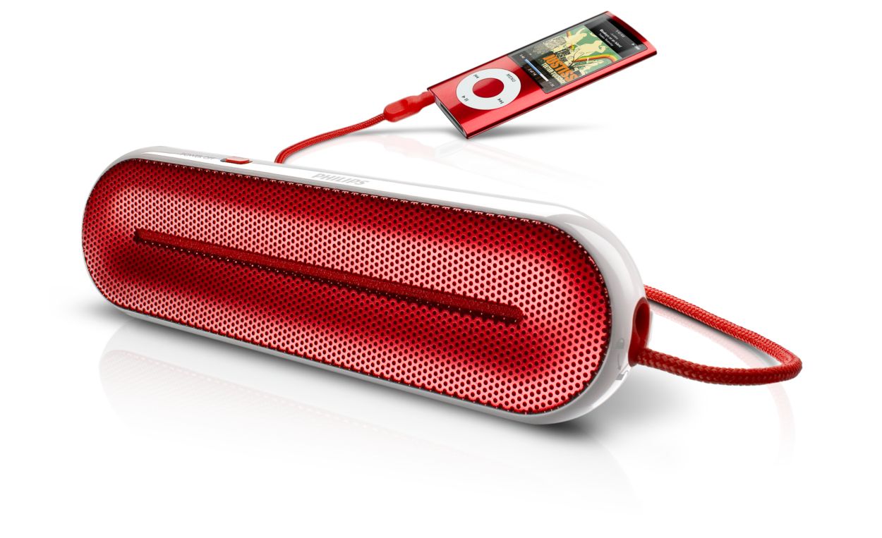 These speakers are ready to go! When it's time to take your music on the go, reconnect the line-in cable and secure it in place to use as a convenient lanyard.