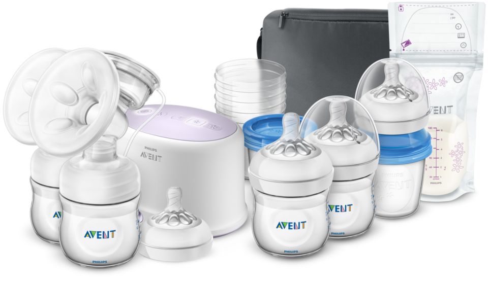 This set contains all you need to pump, store and feed your breast milk. Reduce expression time with double pumping, and sit comfortably with no need to lean forward and let our soft massage cushion gently stimulate your milk flow.