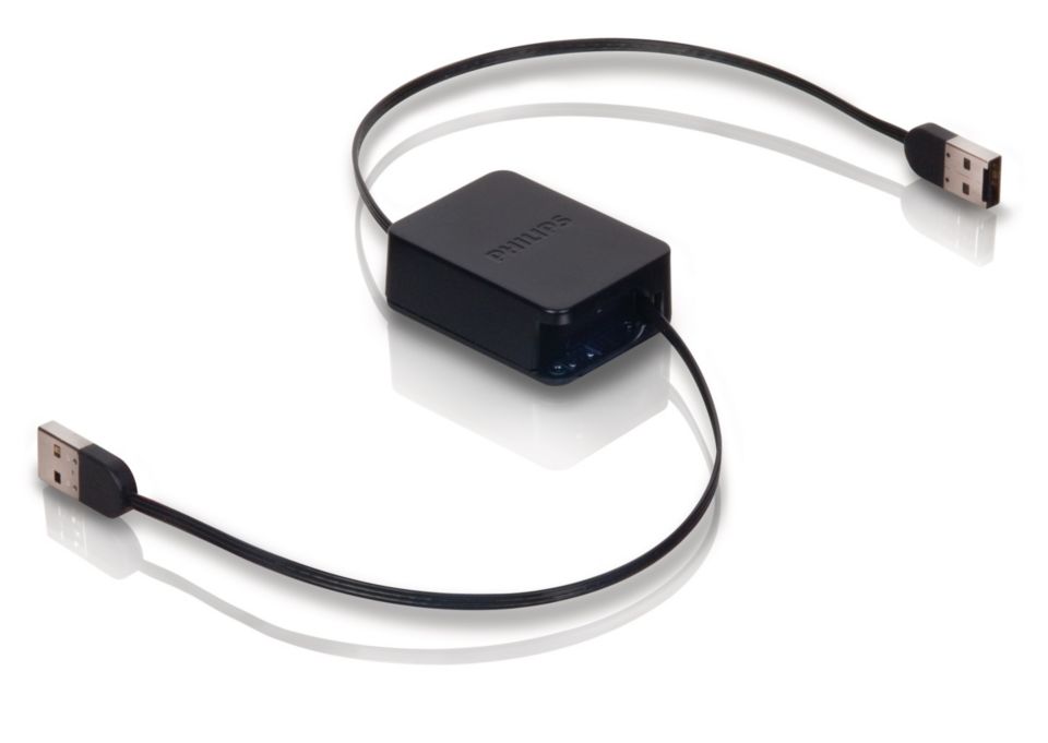 The spring-loaded retractable device facilitates easy mobility when traveling by allowing you to select exactly the length of cable you need and storing the rest on an internal reel.