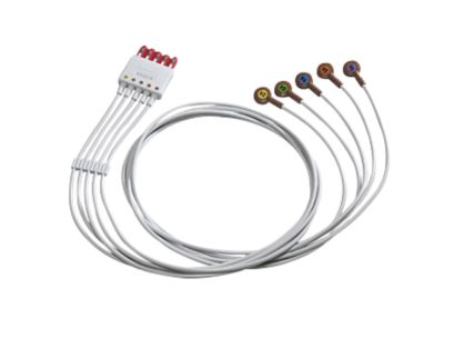 5 lead set snap AAMI, ICU. Grey colored, easy to manage lead wires with chest lead color coded snaps. Packaged 1 set per bag. Must be used with new trunk cable designs: M1663A and M1949A.