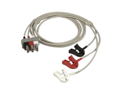 Shielded 3 lead set shielded grabbers safety AAMI. Used with safety ECG trunk cables. Grabber electrode connectors. Gray colored wires. 1.0m (3.3') long. 1 set.