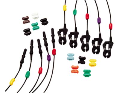 Unshielded black 5 lead set with safety grabber connectors. Grabber termination, radiolucent, 5 individual wires. AAMI and IEC color coding for 3 and 5 lead monitoring with Philips CMS trunk cables: M1668A and M1669A. Packaged with 5 individual wires.
