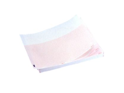 PTP-brand anti-fade thermal paper for PageWriter XL, Z-fold, with 2-78" (7.3cm) header, red grid.
