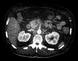 Created by removing the iodine component from the image. Hounsfield Unit (HU) measurements from virtual non-contrast spectral results are comparable to true non-contrast scans for the majority of the organs, allowing VNC results to replace a true non-contrast scan.
