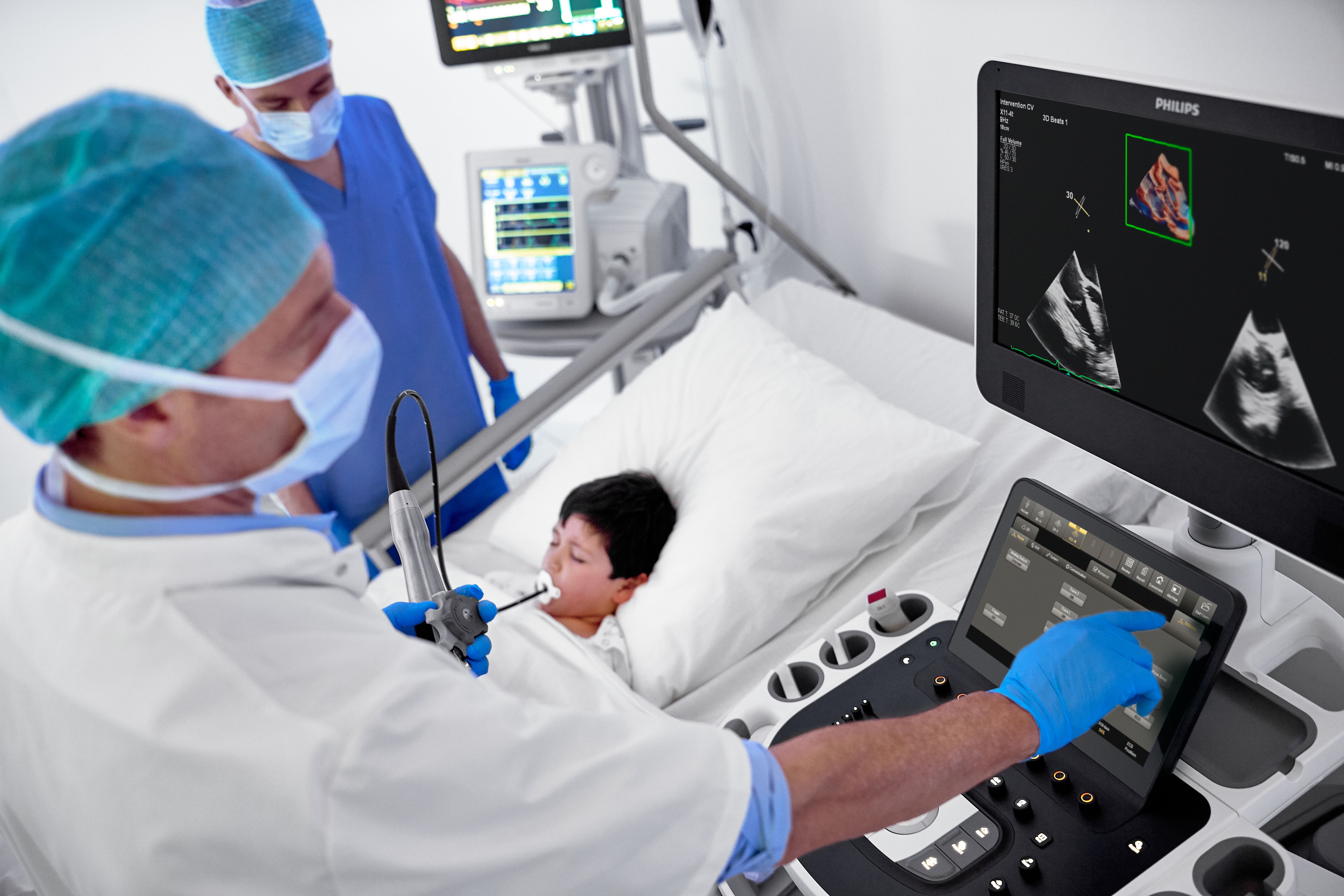 Powered by AI-based capabilities, our industry-leading CV ultrasound platform delivers advanced tools for structural heart disease, including 3D automated tricuspid valve and color flow quantification tools. Efficient automation and quantification tools enable you to diagnose heart failure and coronary artery disease quickly and confidently. Tiny transducers, high frame rates and sharp imaging support confidence in pediatric echo exams. Unified on- and off-cart workflow supports lab setup and consistent UI and workflow across systems.