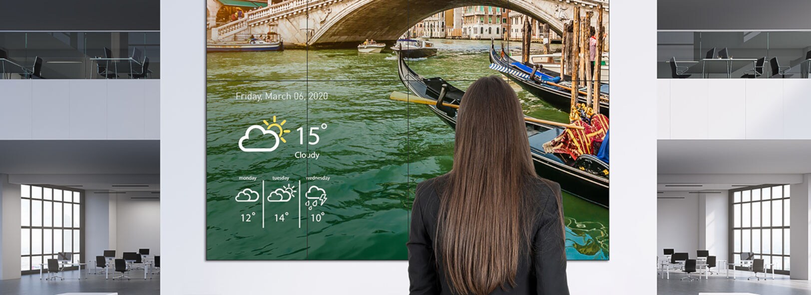 Reach new heights or go wide with a custom Videowall display in either portrait or landscape mode. Connect as many displays as you like to form a captivating design that fits perfectly in your space.